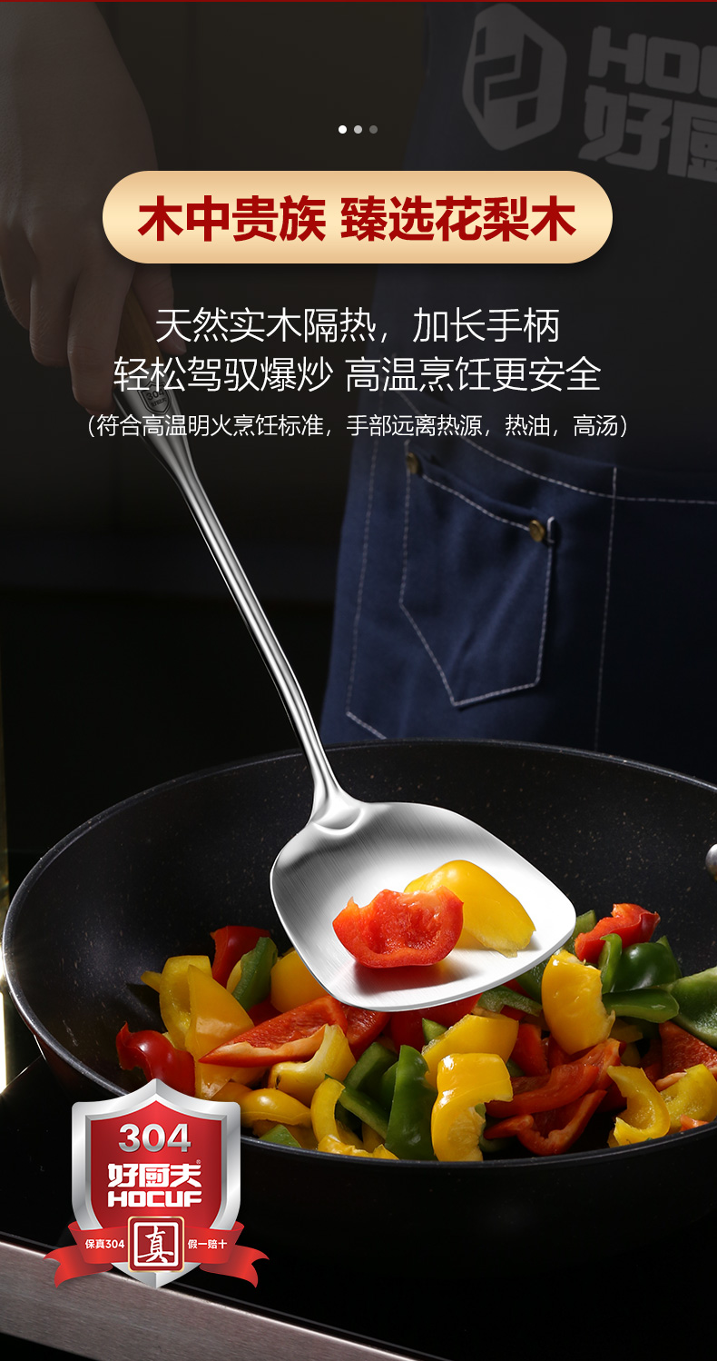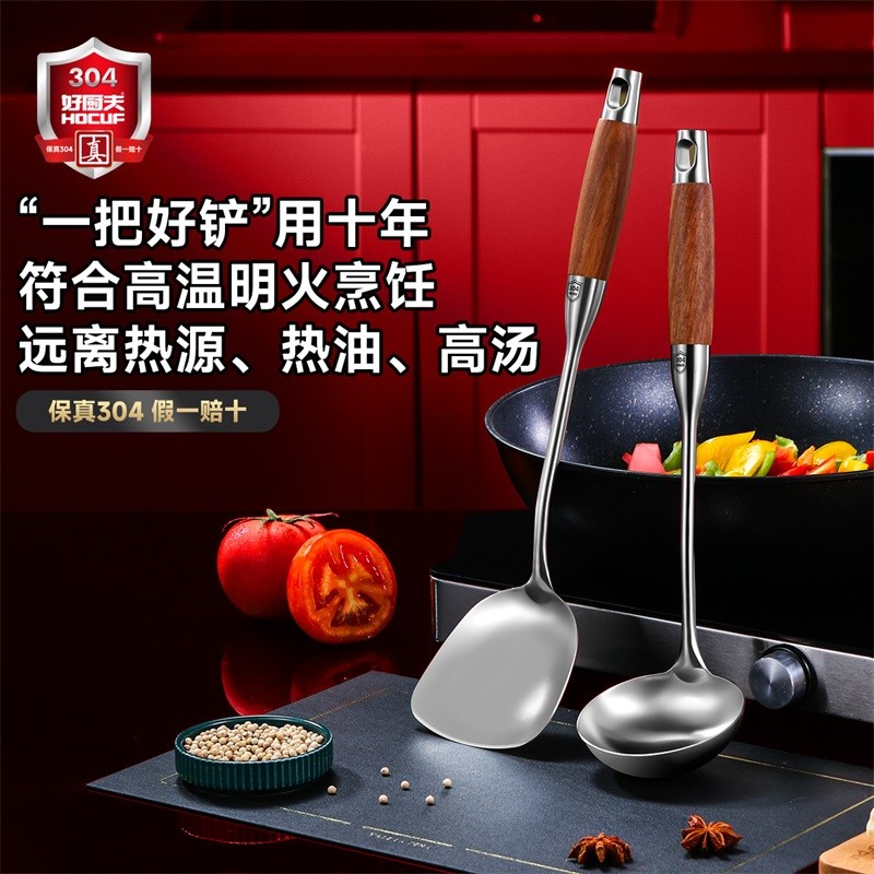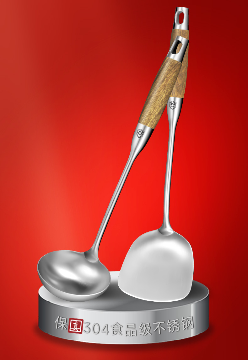 304不锈钢花梨木铲勺